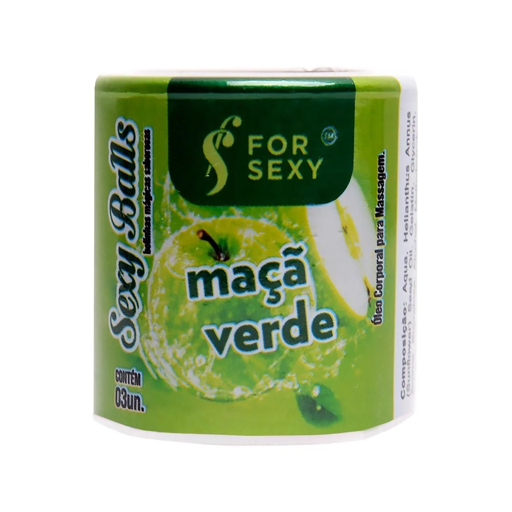 Bolinhas Mágicas Saborosas Maçã Verde Sexy Balls - 03 Unidades For Sexy. Desfrute de uma experiência íntima deliciosa com as Bolinhas Mágicas Saborosas Sexy Balls. Este conjunto premium de 3 bolinhas beijáveis com diversos sabores irresistíveis é perfeito para tornar sua prática sexual ainda mais prazerosa e saborosa.